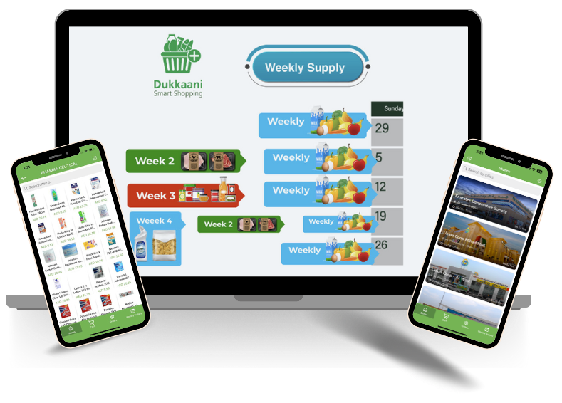 Create An innovation grocery shopping experience that will automate your grocery shopping journey when you are using Dukkaani’s Grocery Weekly Supply Cycles.