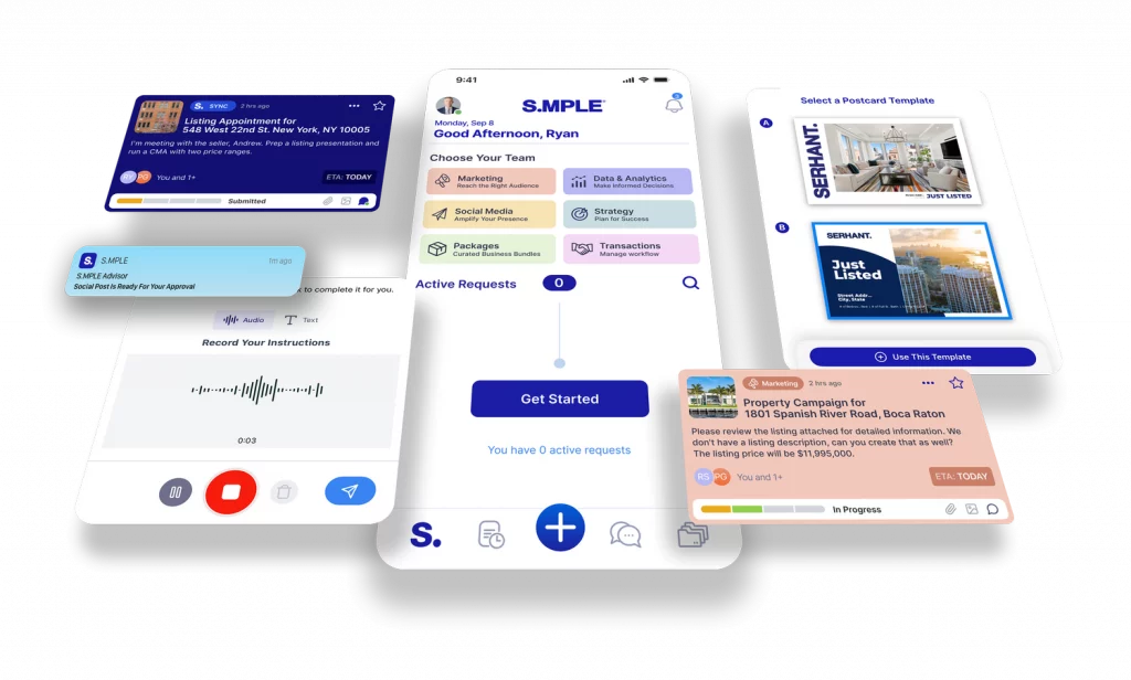 S.MPLE is a next-generation productivity platform designed for real estate agents to drastically reduce administrative burdens and streamline the full lifecycle of a transaction — from lead management to marketing, contract paperwork, and follow-ups. The platform combines smart automation with human-verified execution, providing agents with a unified, efficient workflow.
